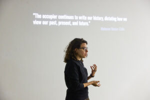 Kino Palestine ist ein in Prag ansässiges Kollektiv, das seit Dezember 2023 Vorführungen palästinensischer Filme sowie Gesprächsrunden mit und Ausstellungen von palästinensischen Filmemacher*innen organisiert. Zudem betreibt die Initiative Forschung zum palästinensischen und arabischen Kino. Mit seinen Veranstaltungen möchte Kino Palestine palästinensischen Stimmen und Narrativen Gehör verschaffen, die Solidarität mit Palästinenser*innen und palästinensischen Künstler*innen innerhalb der internationalen Kunst- und Kulturszene verstärken und zur Reflexion darüber anregen, wie Geschichtsschreibung durch Bilder geprägt wird oder auch ins Wanken gerät.